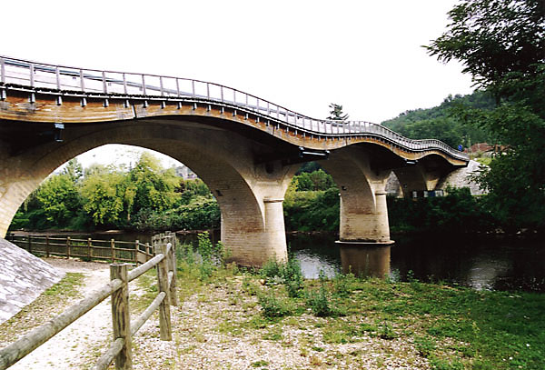 In Les Eyzies de Tayac führt diese Brücke über die Vézère, deren Fahrbahn allerdings nicht so gewellt ist. Zu Les Eyzies gehört übrigens auch das Gebiet von Cro-Magnon mit zahlreichen Höhlen, die teilweise besichtigt werden können.