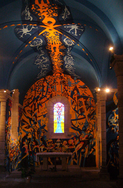 Die neoromanische Dorfkirche von Sous-Parsat wurde in den 1980er Jahren durch den Künstler Gabriel Chabrat modern ausgemalt. Mir gefiel es sehr gut, aber es würde mich schon interessieren, wie die Resonanz im Dorf war...