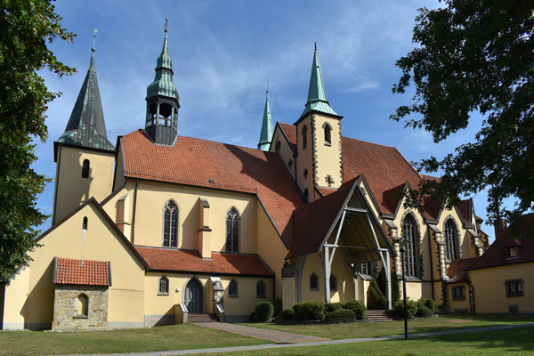 Das 1230 auf einem Meierhof in Haste bei Osnabrück gegründete Nonnenkloster wurde 1247 in das etwa vier Kilometer nördlich gelegene Rulle verlegt. Seit dem 14. Jahrhundert war das Kloster Ziel einer Wallfahrt, die auch noch in der Reformationszeit durchgeführt wurde und im 17. Jahrhundert wieder neuen Auftrieb erhielt. Das Kloster bestand bis zur Säkularisation im Jahr 1803. Erhalten hat sich die Klosterkirche, die allerdings in den Jahren 1928-30 erweitert und dabei stark umgebaut wurde, wobei auch die ursprünglich separat stehende Gnadenkapelle in den Bau einbezogen wurde. Daraus ergibt sich bei der Ansicht von der Südseite ein erstaunliches Gefrickel von Anbauten. Neben der Kirche steht auch noch das Äbtissinnenhaus von 1712.